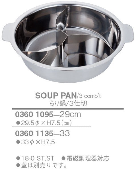 18-0 ちり鍋/3仕切り<YUKIWA>(ユキワ)