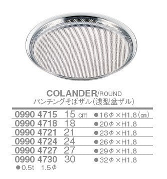 パンチングそばザル(浅型盆ザル)<YUKIWA>(ユキワ)